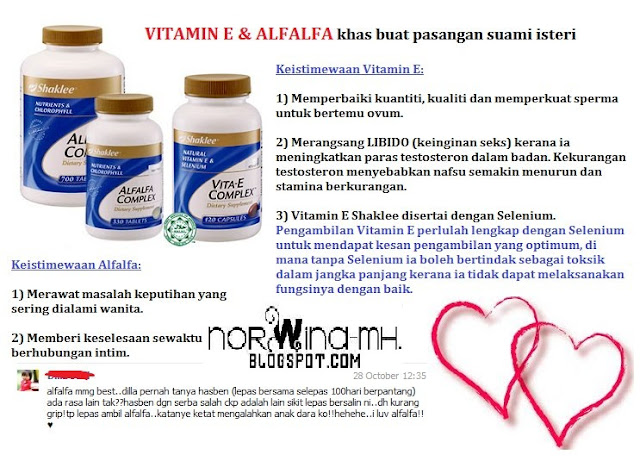 Ok Hari nie Mama Ina Cuti jadi ambillah kesempatan untuk Menulis Blog dan paling Gembira ialah bila dapat Sharing Vitamin Alfalfa dan Vitamin E Shaklee untuk Keintiman Suami Isteri